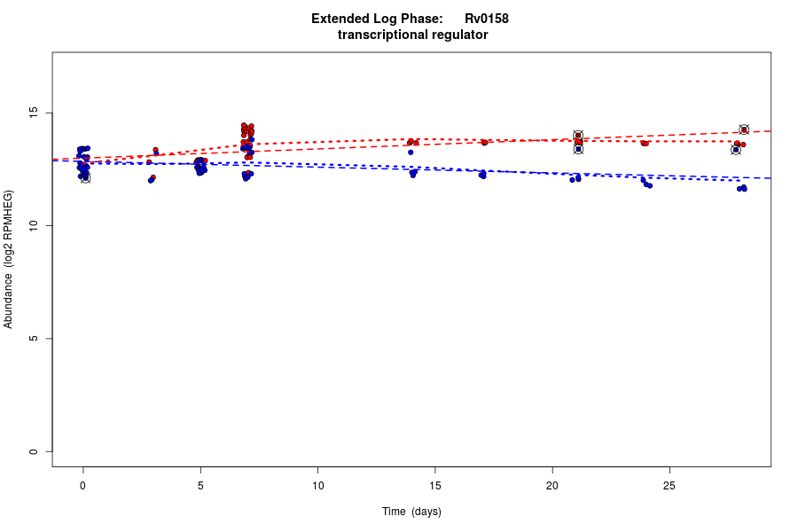 Rv0158 (Transcriptional regulator, TetR family) is predicted to be co-regulated in modules bicluster_0167 with residual 0.51 and bicluster_0350 with residual 0.37.