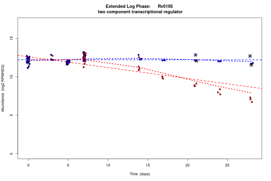 Rv0195 (Transcriptional regulator, LuxR family) is predicted to be co-regulated in modules bicluster_0447 with residual 0.49 and bicluster_0494 with residual 0.46.