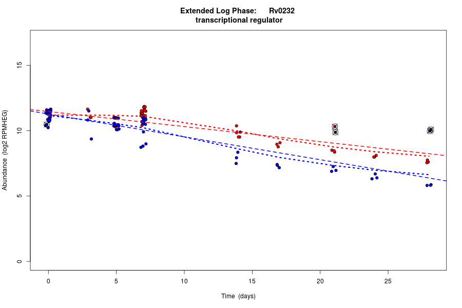 Rv0232 (Transcriptional regulator, TetR family) is predicted to be co-regulated in modules bicluster_0089 with residual 0.51 and bicluster_0560 with residual 0.59.