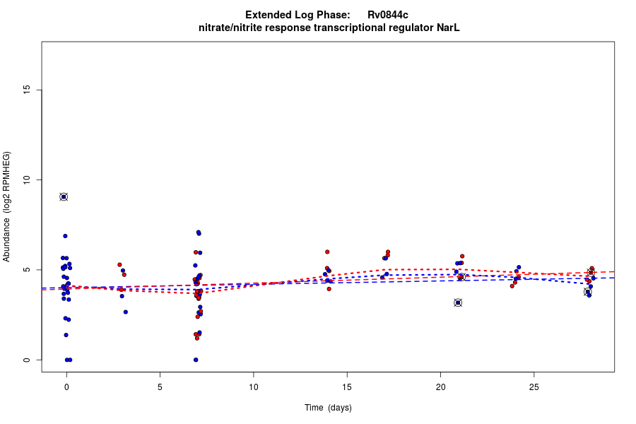 Rv0844c (DNA-binding response regulator, LuxR family) is predicted to be co-regulated in modules bicluster_0099 with residual 0.60 and bicluster_0112 with residual 0.53.