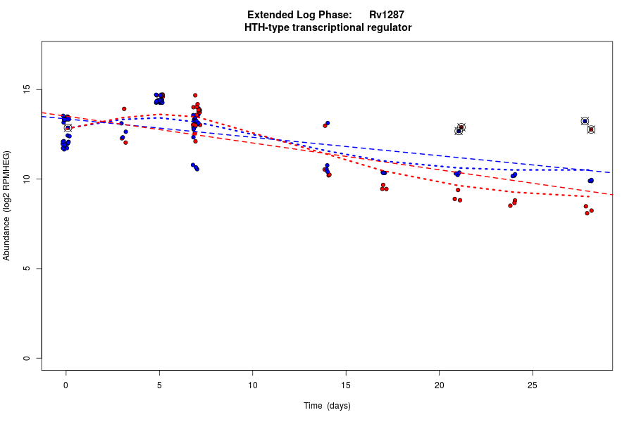 Rv1287 (Predicted transcriptional regulator of sulfate adenylyltransferase, Rrf2 family) is predicted to be co-regulated in modules bicluster_0266 with residual 0.50 and bicluster_0304 with residual 0.58.