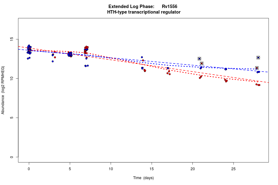 Rv1556 (Transcriptional regulator, TetR family) is predicted to be co-regulated in modules bicluster_0218 with residual 0.55 and bicluster_0578 with residual 0.46.