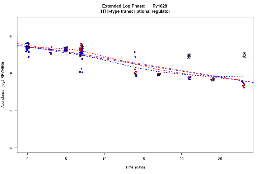 Rv1828 (Transcriptional regulator, MerR family) is predicted to be co-regulated in modules bicluster_0503 with residual 0.54 and bicluster_0594 with residual 0.46.