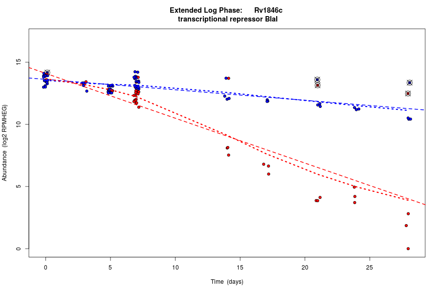 Rv1846c (Transcriptional regulator, BlaI family) is predicted to be co-regulated in modules bicluster_0289 with residual 0.53 and bicluster_0502 with residual 0.52.