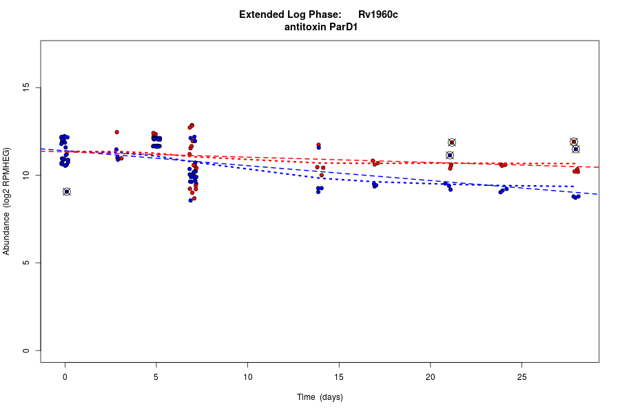Rv1960c (Antitoxin ParD1) is predicted to be co-regulated in modules bicluster_0032 with residual 0.49 and bicluster_0531 with residual 0.54.