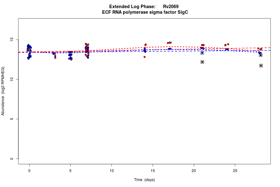 Rv2069 (RNA polymerase sigma-54 factor RpoN) is predicted to be co-regulated in modules bicluster_0061 with residual 0.63 and bicluster_0556 with residual 0.55.