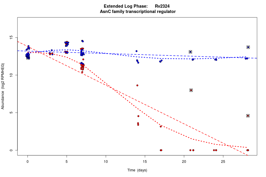 Rv2324 (Transcriptional regulator, AsnC family) is predicted to be co-regulated in modules bicluster_0346 with residual 0.51 and bicluster_0420 with residual 0.47.