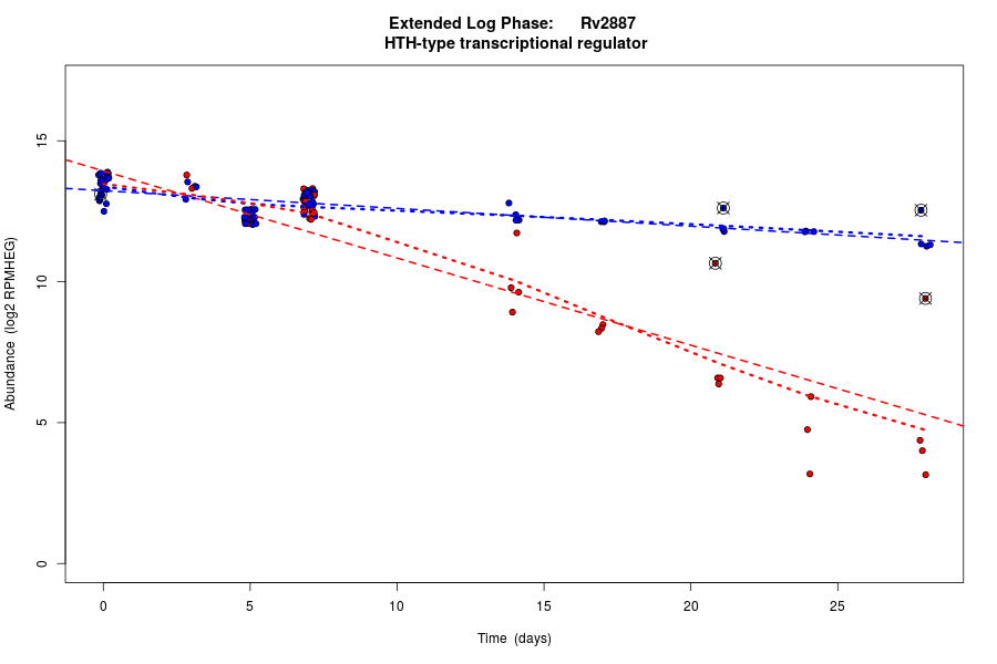Rv2887 (Transcriptional regulator, MarR family) is predicted to be co-regulated in modules bicluster_0140 with residual 0.62 and bicluster_0180 with residual 0.54.