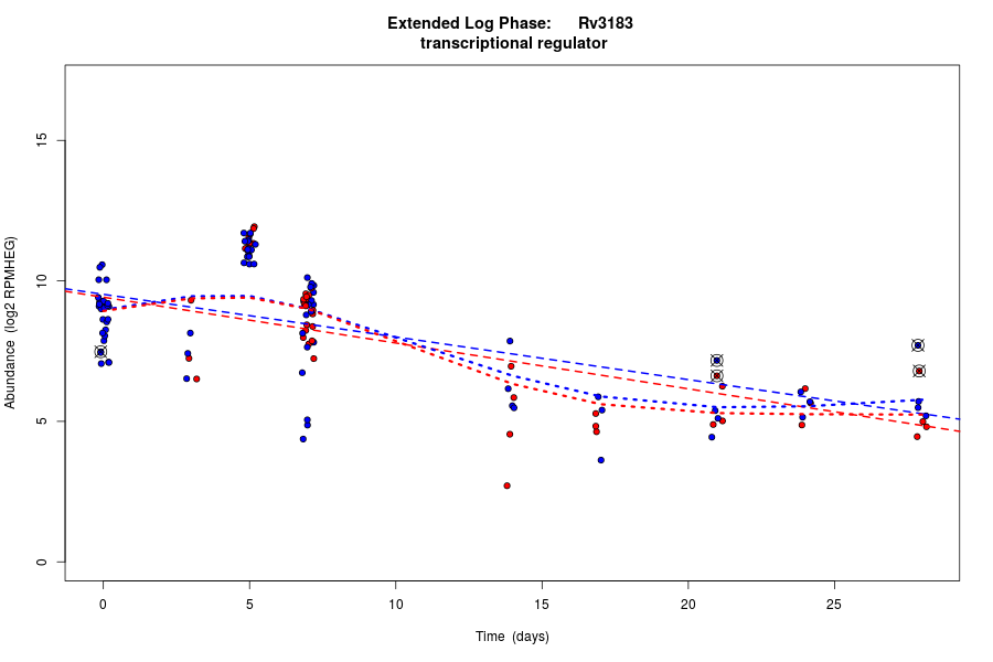 Rv3183 (FIG036183: Transcriptional regulator, XRE family) is predicted to be co-regulated in modules bicluster_0120 with residual 0.55 and bicluster_0180 with residual 0.54.