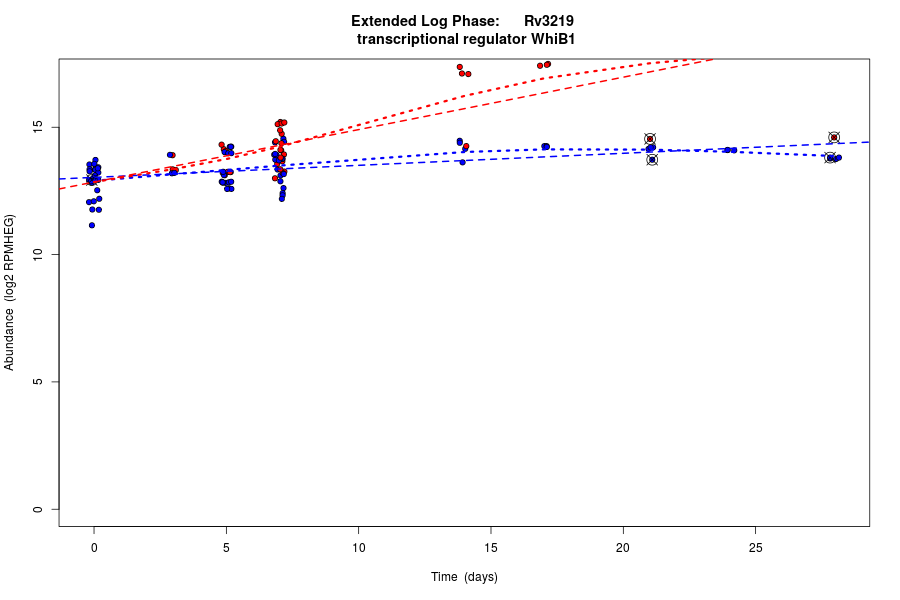 Rv3219 (WhiB-like transcription regulator) is predicted to be co-regulated in modules bicluster_0402 with residual 0.39 and bicluster_0475 with residual 0.40.