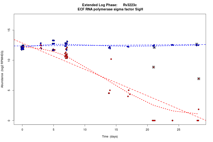 Rv3223c (RNA polymerase sigma-54 factor RpoN) is predicted to be co-regulated in modules bicluster_0224 with residual 0.55 and bicluster_0470 with residual 0.49.
