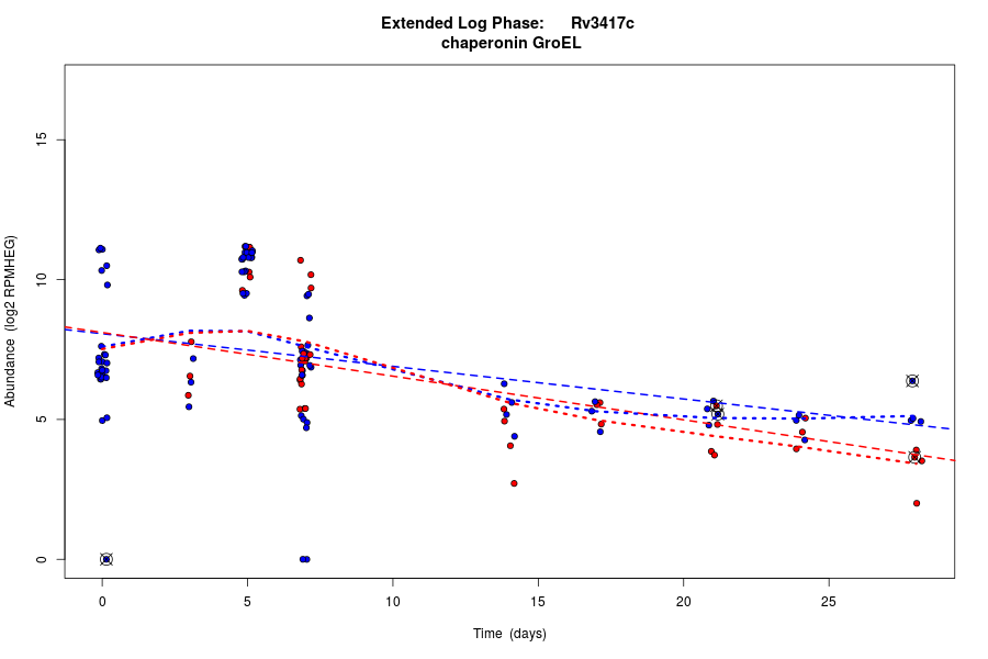 Rv3417c (Heat shock protein 60 family chaperone GroEL) is predicted to be co-regulated in modules bicluster_0327 with residual 0.42 and bicluster_0369 with residual 0.51.