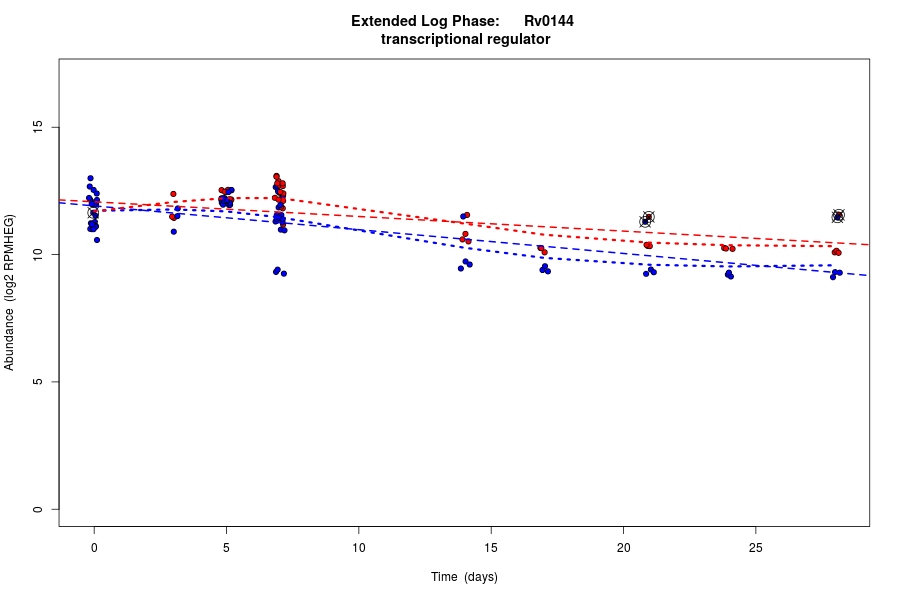 Rv0144 (Transcriptional regulator, TetR family) is predicted to be co-regulated in modules bicluster_0101 with residual 0.62 and bicluster_0315 with residual 0.53.